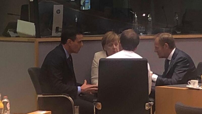 Sánchez, Merkel, Macron, se han reunido con Tusk antes de la cena en la que los líderes de la UE discuten el reparto institucional comunitario.