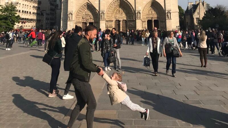 Una mujer tomó una fotografía en la que aparecían un padre y una hija frente a Notre Dame poco antes de que comenzara a arder. Ahora les buscan a través de Twitter para regalarles la bonita imagen.