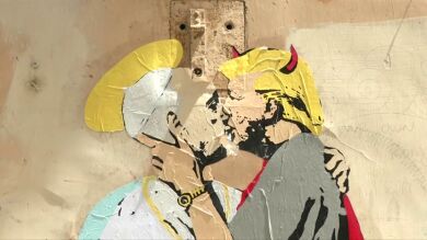 Un beso entre el Papa Francisco y Donald Trump aparece pintado en un muro cercano al Vaticano