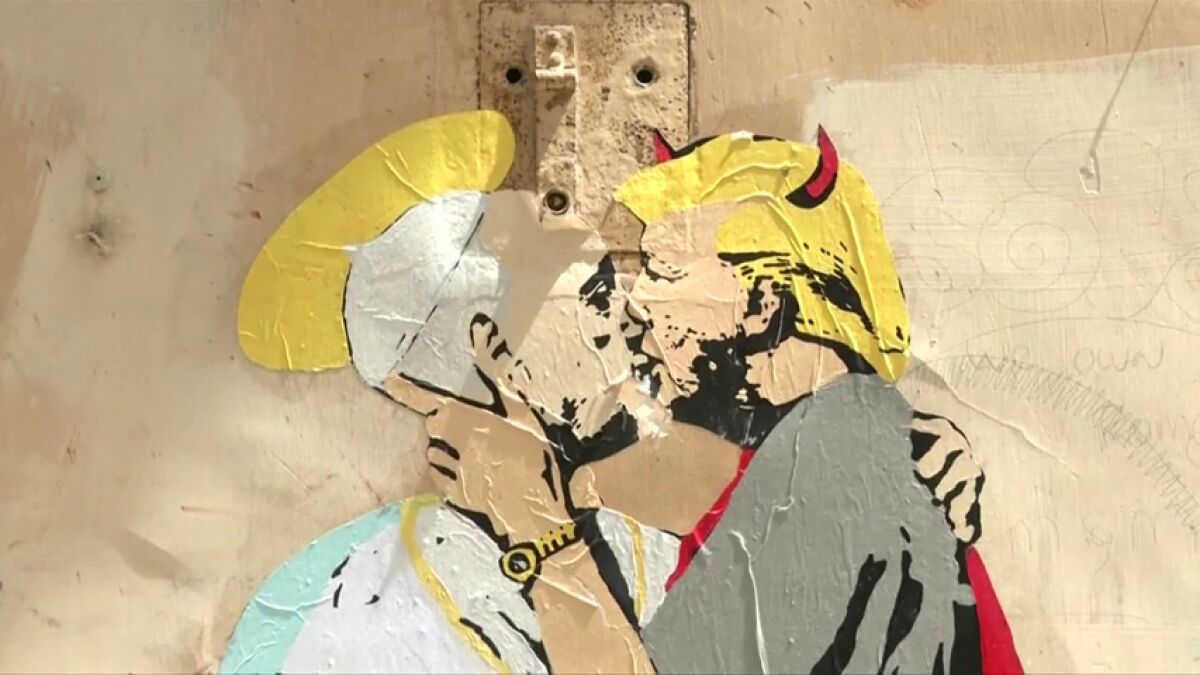 Aparece un mural cerca del Vaticano con un dibujo del papa Francisco, con un halo de santo, besando al Presidente de los EE.UU. Donald Trump, que luce cuernos de demonio. Sucede a menos de dos semanas de la reunión que mantendrán ambos.