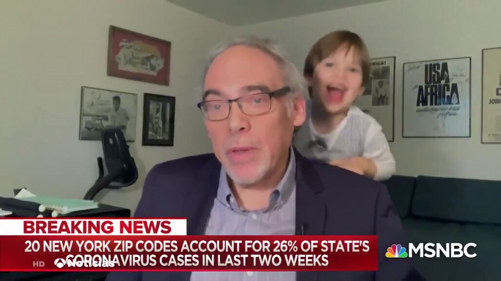 El doctor Irwin Redlener, pediatra y consejero del alcalde de Nueva York, Bill di Blasio, estaba interviniendo en un programa de la cadena MSNBC para aportar sus conocimientos sobre el coronavirus cuando en la habitación hizo aparición alguien inesperado: su nieto aparece en escena y se encarama a la espalda de su abuelo con una sonrisa.