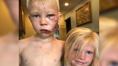 Un niño de 6 años salva a su hermana de un perro y acaba con 90 puntos en la cara