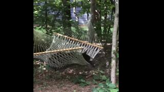 Un oso entra en una casa en Carolina del Norte y se recuesta en una hamaca