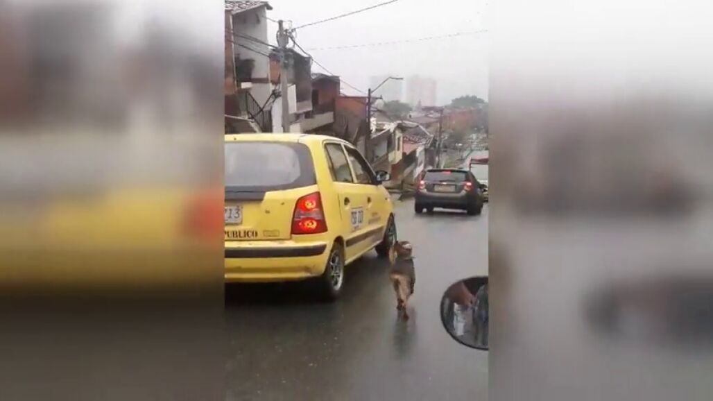 Un perro de Medellín, en Colombia, ha sido grabado mientras perseguía durante 20 manzanas en medio de la lluvia el taxi en el que viajaba su dueña, que lo abandonó.