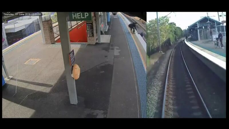 Un usuario del tren de Sydney casi ha estado a punto de morir arrollado. El pasajero caía a la vía tras un balanceo y un tropiezo. En ese momento se percata de que venía un tren a toda velocidad. Otra persona que en esos momentos subía por las escaleras de acceso a la estación se da cuenta de que el pasajero estaba intentando subir al arcén desde la vía y le ayuda. Finalmente ambos se ponen a salvo.