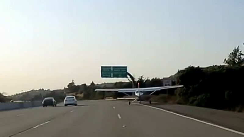 Una avioneta realizó un aterrizaje de emergencia en la carretera interestatal 580 en San Leandro, California. Una familia grabó el momento y ahora se ha hecho viral en Facebook.