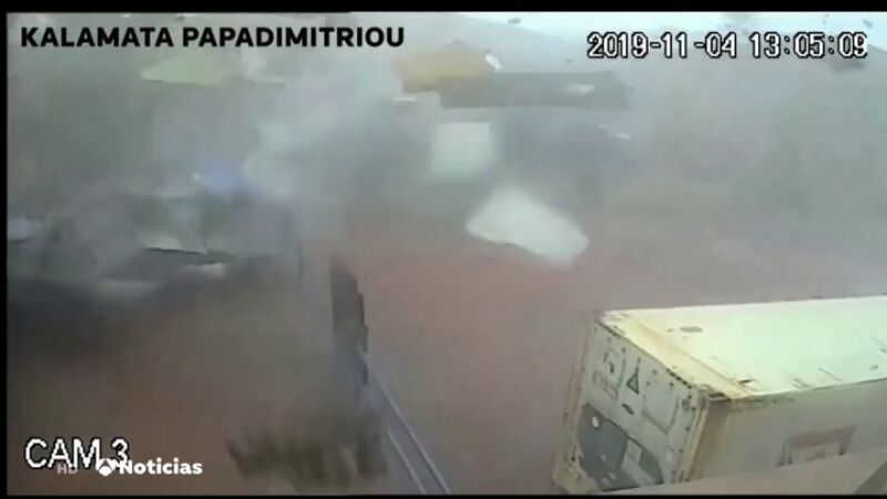 La cámara de seguridad de una fábrica de Grecia ha captado el destrozo tras el paso de un tornado. Las imágenes muestran cómo el fuerte viento arrasa con todo lo que se encuentra a su paso.