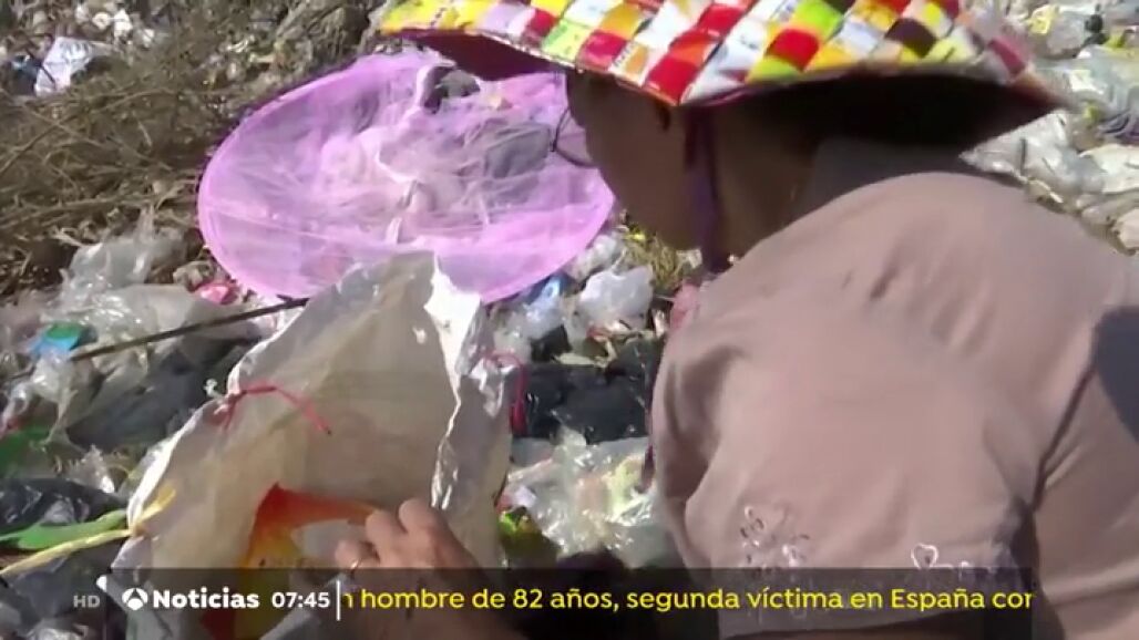 Una mujer de 68 años recoge los plásticos de los vertederos que rodean Rangún, la ciudad más grande de Birmania. Luego los lleva hasta su taller. Allí mediante una técnica que aprendió por Internet los convierte en una tela sintética. Y con ella crea infinidad de productos que vende al público.