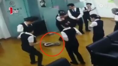 Una serpiente pitón cae desde el techo y sorprende a los empleados de un banco en el sur de China. Finalmente, con la ayuda de la policía, ha sido posible capturar el reptil.