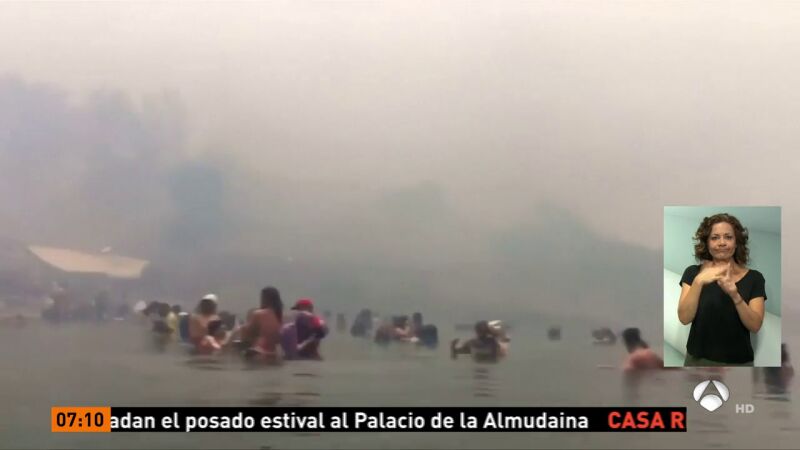 Las llamas les acosaban y no tenían otra vía de escape salvo las aguas del Egeo. Se vieron obligados a correr al mar desde la playa para sobrevivir.