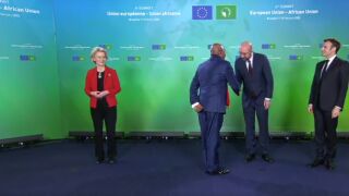 Finalmente, y tras señalar Macron que debía señalar a von der Leyen, el general Odongo se ha dirigido hacia la presidenta de la Comisión Europea y ha intercambiado unos breves gestos con ella. Von der Leyen le ha mostrado su amabilidad a pesar de este nuevo feo que le ha tocado aguantar en el que es su cuarto año como la sucesora de Jean-Claude Juncker.