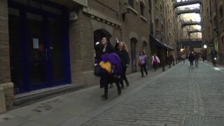 Varias personas corren a despedirse de Isabel II antes del cierre de la cola para acceder a la capilla ardiente