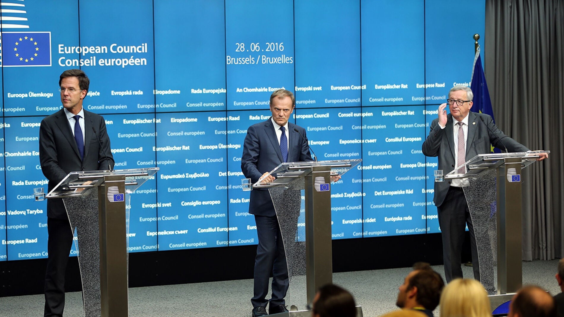 El presidente del Consejo Europeo, Donald Tusk, ha propuesto, además, una nueva cita en septiembre a 27, probablemente en Bratislava, para hablar del futuro de la UE sin el Reino Unido. Los Estados miembros trabajan únicamente sobre la hipótesis de que la salida del Reino Unido se materializará tarde o temprano, y urgen a Londres a que active el artículo 50 del Tratado, con el que se inicia el proceso de divorcio, que durará al menos dos años.