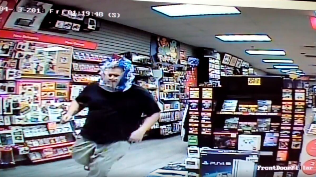 En su página de Facebook, la policía de St. Marys publicó un vídeo en el que se aprecia a Kerry Hammond Jr., de 22 años, corriendo frente a una de las cámaras de la tienda GameStop de la localidad con una bolsa de plástico en la cabeza por medio de la cual puede apreciarse claramente su rostro.