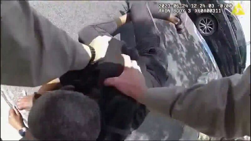 En el vídeo -grabado por la mujer a la posteriormente agredirían- se ve al hombre preguntando: "¿Por qué estoy bajo arresto... por qué?". A lo que el agente responde: "Usted no está arrestado, usted está detenido", acto seguido le coloca las esposas y la confrontación empieza a subir de tono.