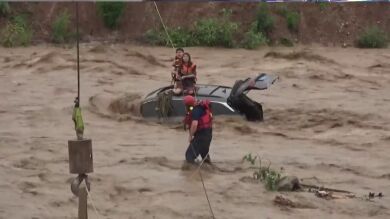Los equipos de rescate consiguieron en primer lugar hacerles llegar los chalecos salvavidas a través de un dron a estos dos individuos para que así pudieran escapar del coche y no permanecer atrapados más tiempo en caso de que el auto fuese llevado por la fuerza del agua. Afortunadamente, esto no sucedió y mediante un sistema de cuerdas la pareja consigue salir en mitad de mucha tensión y expectación por el riesgo al que se enfrentaban.