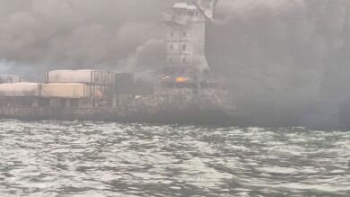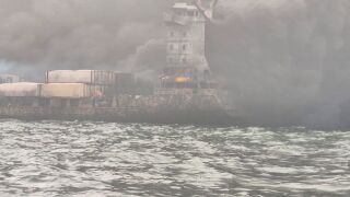 En la zona también trabajan en las labores de rescate una aeronave de ala fija de la Guardia Costera así como embarcaciones cercanas con capacidad de extinción de incendios.