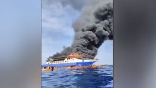 Cerca de 300 personas han sido rescatas con vida del ferry incendiado.