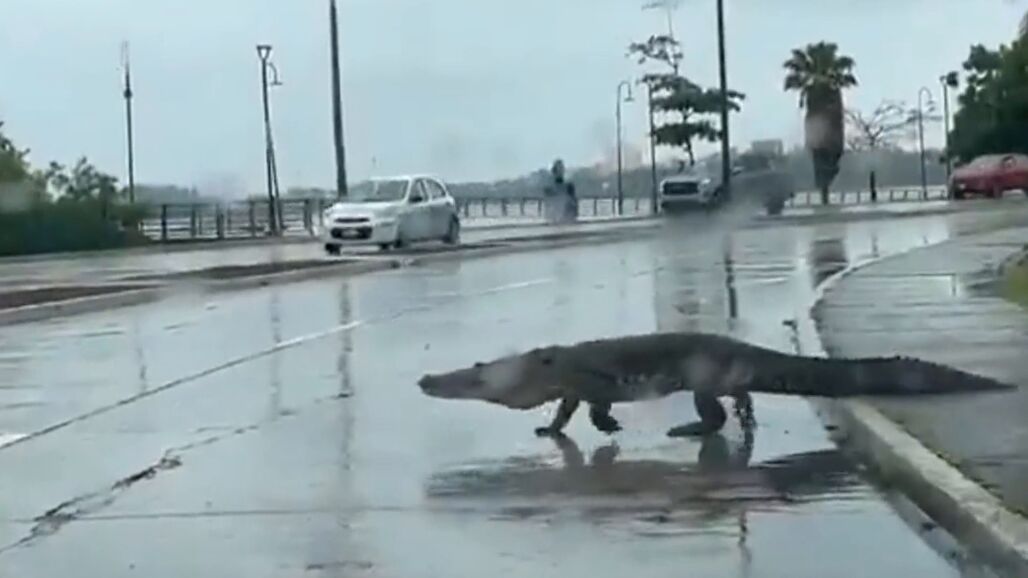 Vídeo: Un cocodrilo camina por la calle tras las intensas lluvias