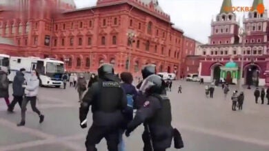 El vídeo de la detención de una mujer en Moscú mientras protestaba pacíficamente contra la guerra en Ucrania