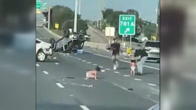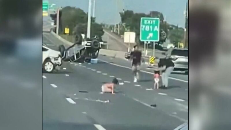 Vídeo: dos bebés en pañales en mitad de la carretera tras un accidente en Texas