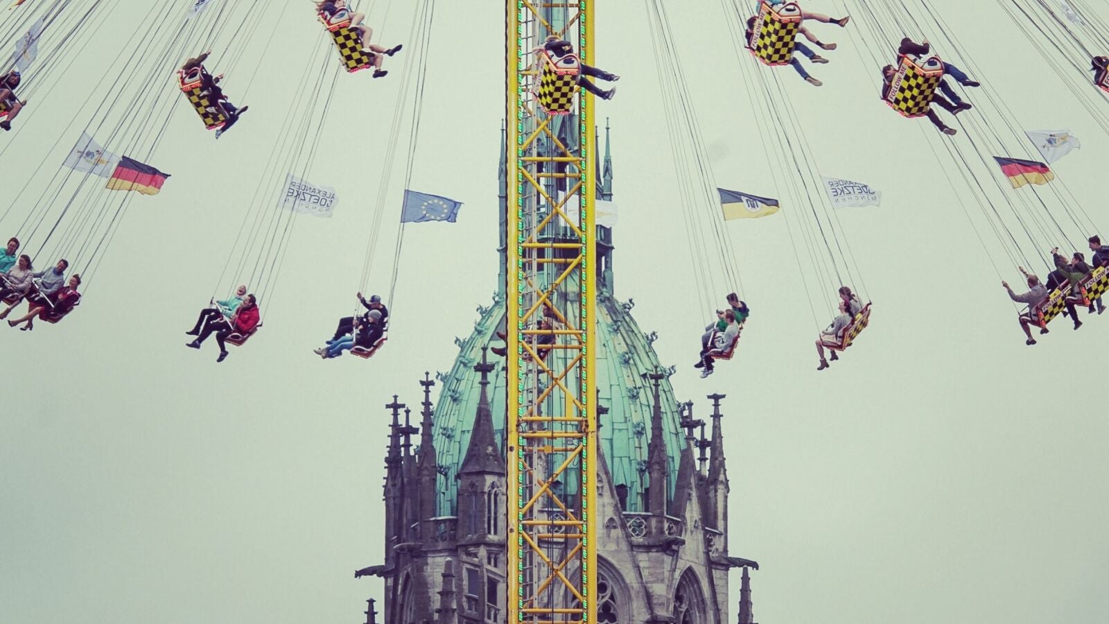 Las ‘sillas voladoras’ es un juego que hay en algunos parques de atracciones que consiste en un mecanismo que gira constantemente sobre sí mismo mientras algunas sillas cuelgan con unas cadenas de la parte superior de la estructura. Esto da una sensación de estar volando desde el primer momento en el que el juego empieza con lo previsto, es decir, a girar.