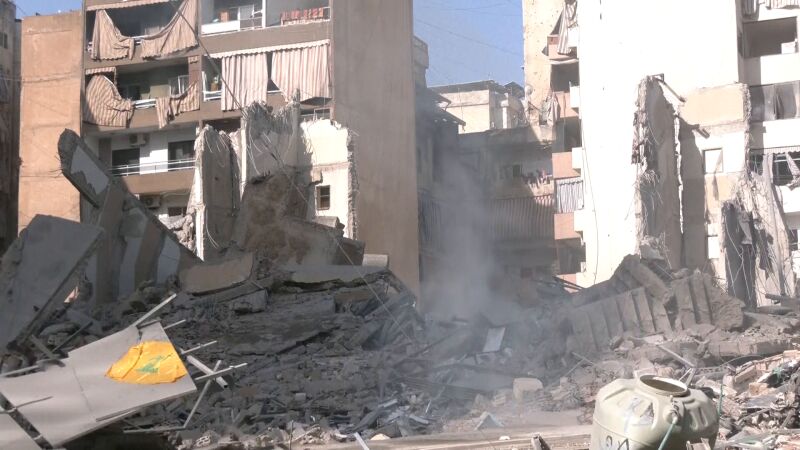 VÍDEO del momento en el que un misil impacta sobre un edificio en Beirut y colapsa totalmente