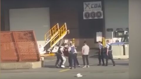 Los pasajeros de un avión, que viajaba desde Reino Unido a Ibiza, grabaron unas impactantes escenas en las que se ve cómo unos pasajeros británicos en estado de embriaguez son expulsados por unos agentes franceses.