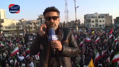 La República Islámica iraní ha puesto en marcha su propaganda y convoca actos multitudinarios a favor del régimen por todo el país. En uno de esos actos, un reportero que estaba trabajando para la televisión iraní narraba como si fuera una retransmisión deportiva el sonido de las bombas.