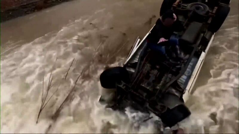 Vídeo: Rescate de película de una mujer a punto de ser arrastrada por una riada en California