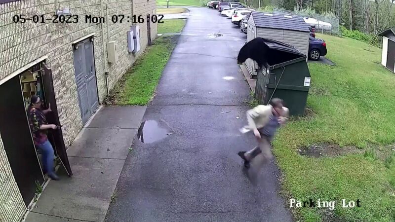 Un profesor estadounidense salió de su trabajo cuando de repente empezó a escuchar unos ruidos muy extraños que procedían de un contenedor. Decidió acercarse y fue entonces cuando vio algo completamente inesperado, un oso negro salió del cubo de basura que había en la puerta trasera de la escuela en la que trabaja. Parece de película, aunque fue realmente lo que sucedió.
