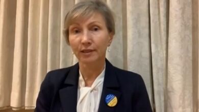 Nuestra corresponsal desde Londres, Eva Millán, la ha entrevistado. Marina la recibe con un broche en la solapa con los colores de la bandera ucraniana.