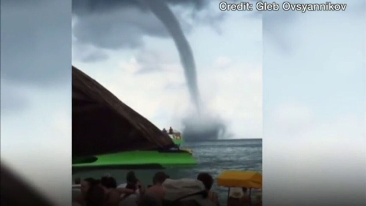 Este domingo se grabó una tromba de agua, llamada 'waterspout', en Rusia. El fenómeno captó la atención de todas las personas que pasaban por allí. Se trata de un fenómeno meteorológico que suele darse sobre el mar muerto.