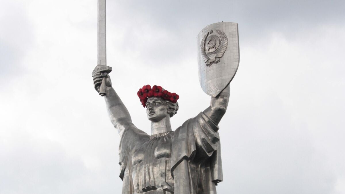 El Monumento de la Madre Patria que se encuentra en el exterior del enorme Museo Nacional, la estatua más alta de Europa, ya no cuenta desde este lunes con las hojas de laurel que rodeaban el emblema soviético. Los trabajadores lo reemplazarán por un 'tryzub', que es el emblema de tres puntas de Ucrania. La nueva 'imagen' estará lista antes del 24 de agosto, día en el que el país celebra su Independencia.