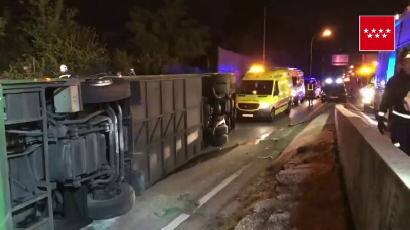 Heridas 20 personas al volcar un autobús en la A-1 en Madrid