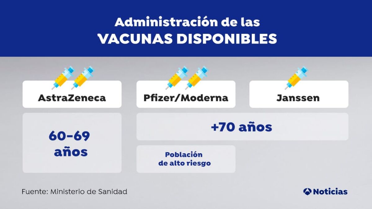 Janssen, Pfizer y Moderna para los mayores de 70