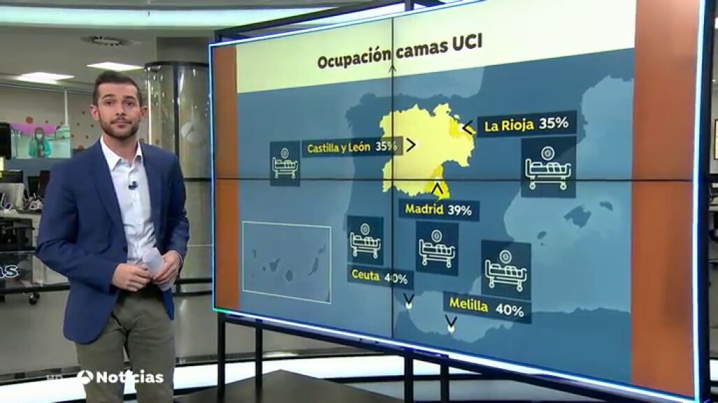 Los territorios más afectados en cuanto a ocupación en camas UCI, las ciudades autónomas de Ceuta y Melilla, a las que siguen de cerca Madrid, Castilla y León y La Rioja.