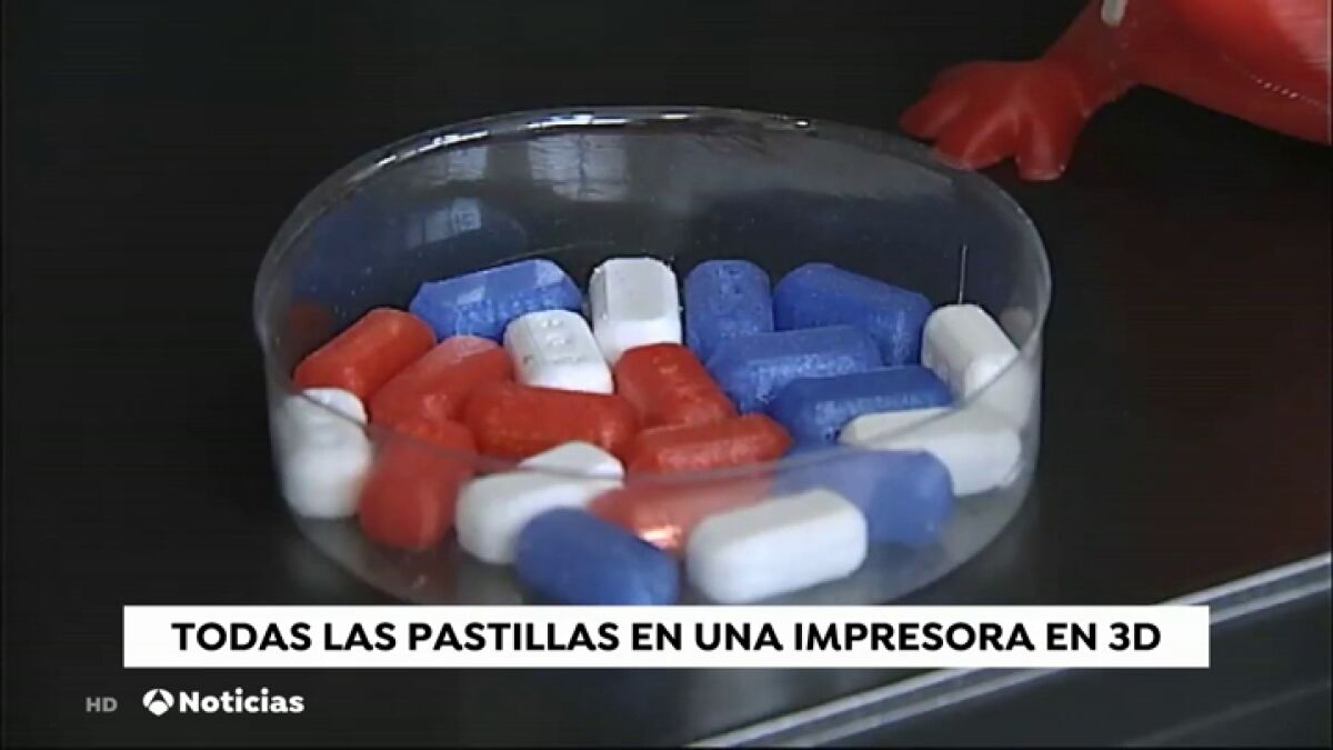 Dos ingenieros gallegos han creado una impresora 3D capaz de convertir multitud de pastillas en una sola. Se acabaron los pastilleros y apuntar en cada caja de medicamento qué tipo es, la dosis y cuándo hay que tomarsela. La idea, que se encuentra aún en fase de desarrollo, tiene como objetivo simplificar la vida a la gente que debe tomar varias pastillas al día para que sea una sola.