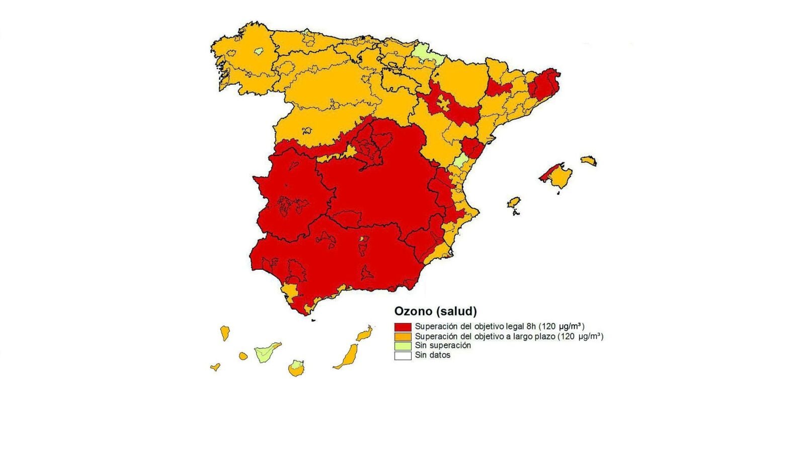 Las zonas donde se incumplen los límites están repartidas entre las comunidades autónomas de Andalucía, Aragón, Baleares, Castilla-La Mancha, Castilla y León, Cataluña, País Valenciano, Extremadura, Madrid, Murcia y Navarra, con casi 19 millones de habitantes, dos de cada cinco personas que viven en el Estado.