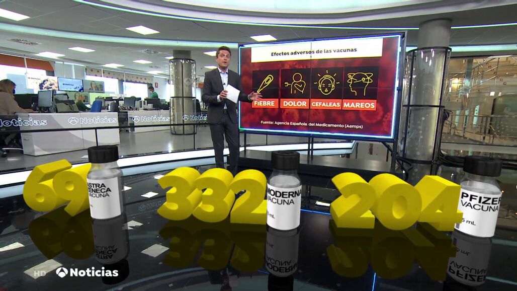 Según los dados de la Agencia Española del Medicamento la vacuna contra el COVID-19 de AstraZeneca ha notificado 69 efectos adversos por cada 100.000 habitantes. La de Moderna, por su parte, 332, convirtiéndose en la que más efectos ha notificado y la de Pfizer 204 casos por cada 100.000 habitantes.