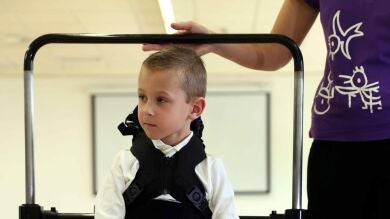 El exoesqueleto servirá para ensayar terapias en pacientes con atrofias musculares para mejorar la calidad de vida y retrasar las complicaciones derivadas de la pérdida de fuerza y movilidad. Jens, un niño de cinco años, ha sido el primero en probarlo.