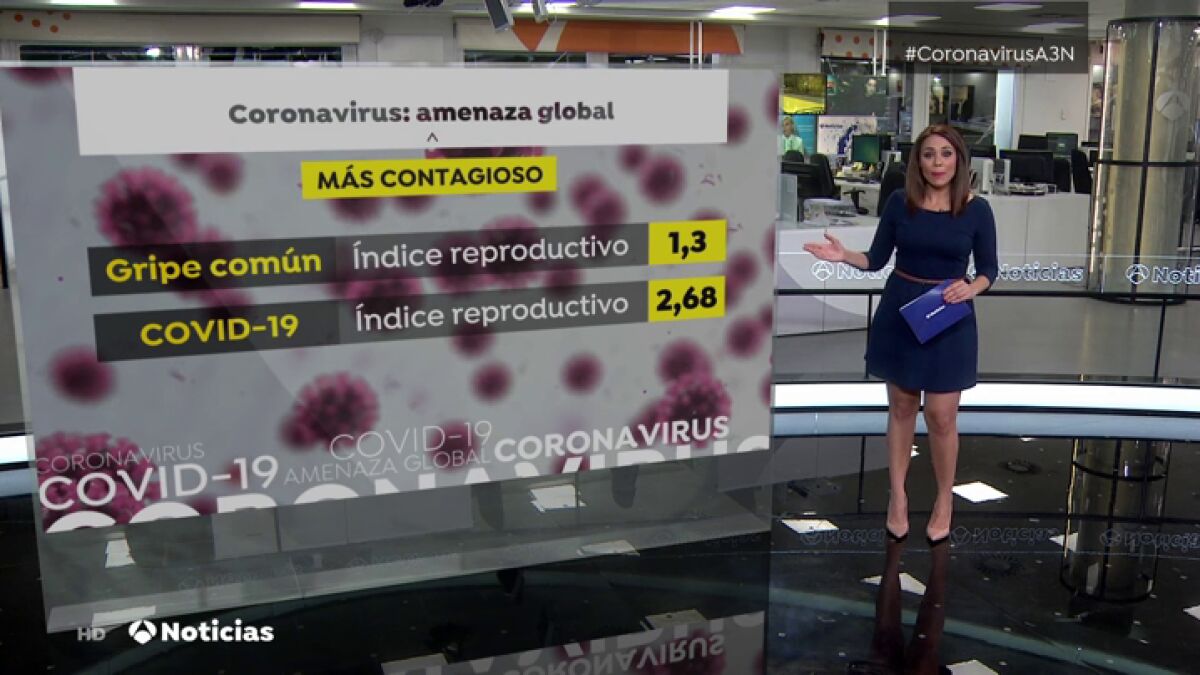 La gripe tiene un número reproductivo de 1,3: esto significa que cada infectado transmite la enfermedad a una persona. Sin embargo, el del coronavirus es mucho mayor y alcanza en 2,68, así que contagia a casi tres personas. Esto, multiplicado por muchos casos como está pasando en la actualidad, provoca que se propague rápidamente.