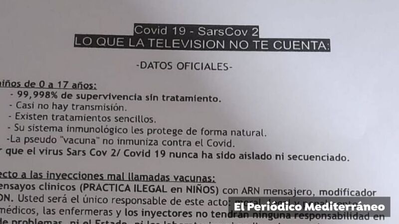 Los negacionistas de las vacunas contra la Covid-19 han lanzado una campaña de buzoneo en Castellón para advertir a la población, según ellos, de las contraindicaciones que presentan las vacunas contra el coronavirus para el organismo.