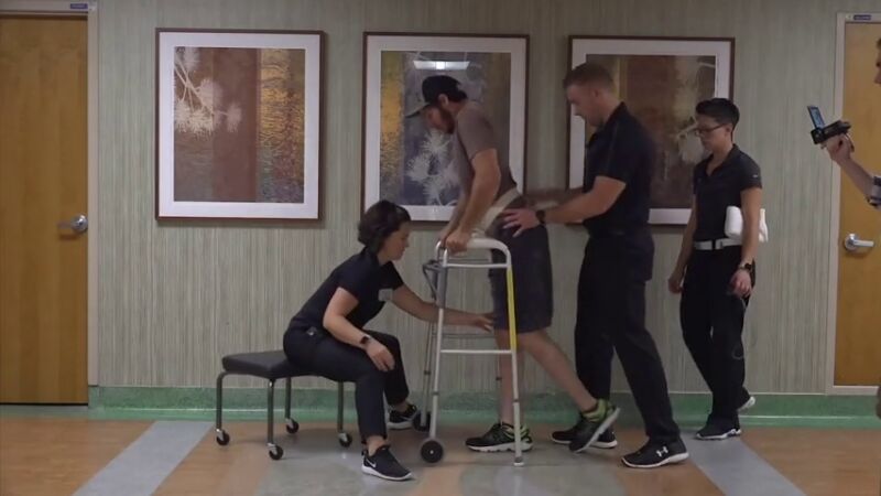 De esa forma, el afectado pudo desplazarse con ambas piernas ayudado por un andador con ruedas delanteras así como por una cinta de andar.