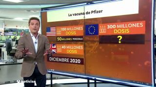 Ambos países podrían empezar a vacunar, con la de Pfizer, en diciembre de 2020. Mientras que Europa todavía no la ha comprado, pero tiene comprometidas 300 millones de dosis. Aquí estarían las de España, que le correspondería un porcentaje correspondiente a la población.