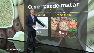 Once millones de personas mueren al año por enfermedades directamente relacionadas con la dieta, como las del corazón y algunos cánceres. Las dietas más letales son las que tienen mucha sal, con tres millones de fallecidos al año, y las que contienen poca fibra y frutas, con otros tres millones en todo el mundo.