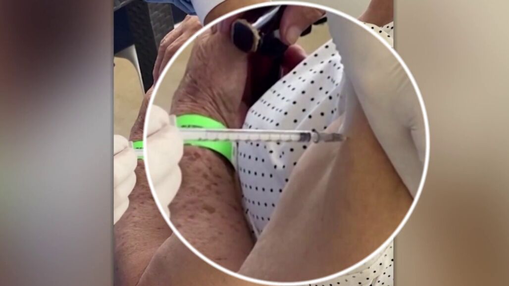 Una mujer graba cómo vacunan contra el coronavirus a su abuela con una jeringuilla vacía
