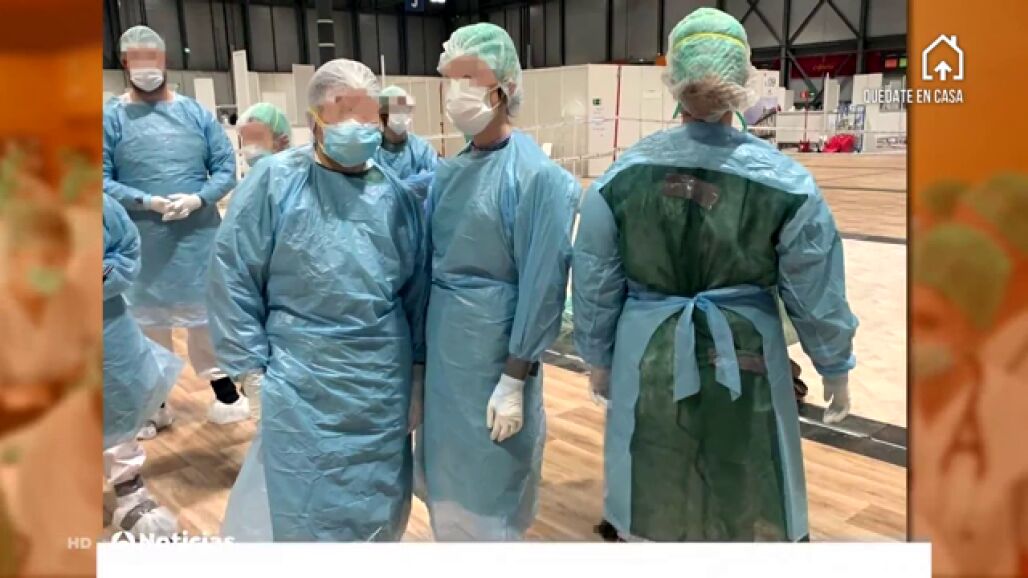 Los sanitarios del hospital de campaña de Ifema, que ya son más de 800, se quejan de las condiciones en las que están trabajando para atender a más de 1000 pacientes de coronavirus. Sin material de protección, en ocasiones sin guardar las distancias mínimas, y con batas no apropiadas para evitar el contagio.