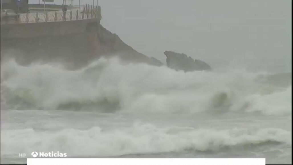 Hay 30 provincias en alerta por fuertes vientos y olas de seis metros. La borrasca "Amelie" afecta sobre todo a la cornisa cantábrica. En el País Vasco se han cerrado los paseos marítimos, y el viento ha provocado algunos destrozos.