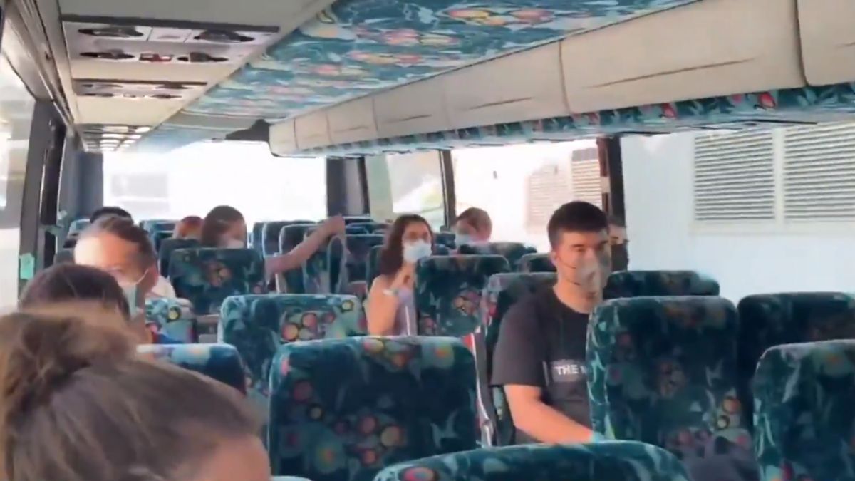 Los estudiantes confinados en Mallorca ya están de camino a sus respectivos hogares. Hace dos días varios autobuses han subido al ferry a recogerlos con el objetivo de que no se rompa la burbuja en que han hecho todo el trayecto.